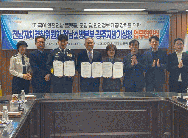 ÁÖ¿µ±¹ Àü³²¼Ò¹æº»ºÎÀåÀº ¡°À̹ø Çù¾àÀº ´Ù±¹¾î ¾ÈÀüÀü³² Ç÷§ÆûÀ» Áß½ÉÀ¸·Î ¼Ò¹æ¡¤±â»ó¡¤Ä¡¾È Á¤º¸¸¦ Çϳª·Î ¿¬°áÇØ µµ¹Î°ú ¿Ü±¹ÀÎ ÁֹΠ¸ðµÎ¿¡°Ô ´õ¿í ½Å¼ÓÇϰí Á¤È®ÇÑ ¾ÈÀüÁ¤º¸¸¦ Á¦°øÇϱâ À§ÇÑ ÀÇ¹Ì ÀÖ´Â Ãâ¹ßÁ¡¡±À̶ó¸ç, ¡°°ü°è±â°ü°úÀÇ ±ä¹ÐÇÑ °øÁ¶¸¦ ÅëÇØ À糡¤ÀÀ±Þ»óȲ ´ëÀÀ·ÂÀ» ³ôÀ̰í, ´©±¸µµ Á¤º¸¿¡¼ ¼Ò¿ÜµÇÁö ¾Ê´Â ¾ÈÀüÇÑ Àü³²À» ¸¸µå´Â µ¥ ÃÖ¼±À» ´ÙÇϰڴ١±°í ¸»Çß´Ù.