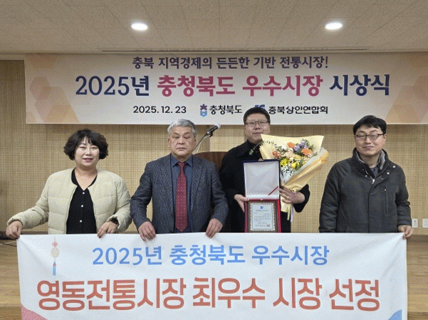 ¿µµ¿ÀüÅë½ÃÀå»óÀÎȸ´Â 23ÀÏ ÃæºÏ»óÀο¬ÇÕȸ ÁÖ°üÀ¸·Î ÃæºÏ»óÀο¬ÇÕȸ ȸÀǽǿ¡¼ ¿¸° 2025³â ÃæÃ»ºÏµµ ¿ì¼ö ÀüÅë½ÃÀå ½Ã»ó½Ä¿¡¼ ÃÖ¿ì¼ö½ÃÀå ÀÎÁõÆÐ¿Í ½Ã»ó±Ý 720¸¸ ¿øÀ» ¹Þ¾Ò´Ù.