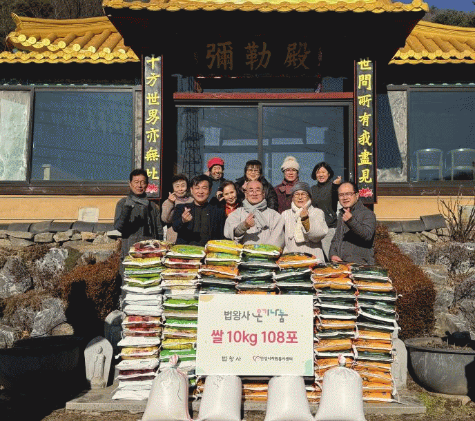 À̳¯ º¸°³¸é¿¡ ÀÖ´Â ¹ý¿Õ»ç´Â Áö¿ª»çȸÀÇ ¾î·Á¿î ÀÌ¿ôÀ» À§ÇØ ½Ò 10kg 108Æ÷¸¦ ¾È¼º½ÃÀÚ¿øºÀ»ç¼¾ÅÍ¿¡ Àü´ÞÇß´Ù.