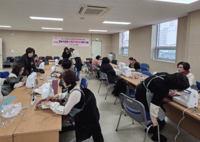 À̳¯ Çà»ç´Â ¿¬¸» ¿¬½Ã Ãß¿öÁö´Â ³¯¾¾¿¡ ü¿Â À¯Áö¿¡ Å« µµ¿òÀ» ÁÖ´Â ¸ñµµ¸®¸¦ Á¦ÀÛÇÏ¿© °ü³» Àå¾ÖÀκ¹Áö½Ã¼³ ÀÌ¿ëÀڵ鿡°Ô ¿Â±â¸¦ ³ª´©±â À§ÇØ ¸¶·ÃÇÑ °ÍÀ¸·Î ¿©¼º´Üü ¼Ò¼Ó ȸÀåµéÀÌ ÀçºÀƲÀ» »ç¿ëÇÏ¿© 50¿© °³ÀÇ ¸ñµµ¸®¸¦ Á÷Á¢ ¸¸µé¾î ¡®Á¤¼º¡¯À̶ó´Â °¡Ä¡¸¦ ´õÇß´Ù.
