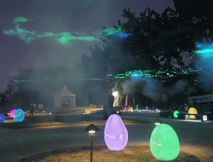 1½Ã°£ µ¿¾È ¿î¿µµÇ´Â ·¹ÀÌÀú ¼î´Â Æ÷±×¿Í ·¹ÀÌÀú ¿¬Ãâ ±â¼úÀ» Ȱ¿ëÇØ ¹ãÇϴÿ¡ ½ÇÁ¦ ¿À·Î¶óó·³ ºÎµå·´°Ô È帣´Â ºûÀÇ ¿òÁ÷ÀÓÀ» ±¸ÇöÇÑ °ÍÀÌ Æ¯Â¡ÀÌ´Ù.