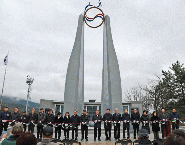 ÂüÀü±â³ä°ø¿ø ³»¿¡ »õ·Ó°Ô Á¶¼ºÇÑ ÃæÈ¥Å¾Àº ³ôÀÌ 15m ±Ô¸ð·Î ÇÏ´ÃÀ» ÇâÇØ ÈûÂ÷°Ô »¸Àº µÎ °³ÀÇ ±âµÕÀ¸·Î °Ç¸³ÇØ Á¶±¹À» ÁöÄѳ½ ¿µ·ÉµéÀÇ °ÀÎÇÑ ÀÇÁö¸¦ ´ã¾Ò´Ù.