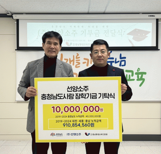 ¼±¾ç¼ÒÁÖÀÇ ÁÖ·Â Á¦Ç°ÀΡ®¼±¾ç¡¯°ú¡®¼±¾ç ¸°¡¯¼ÒÁÖ°¡ ÆÇ¸ÅµÉ ¶§¸¶´Ù º´´ç 5¿øÀ» Àû¸³ÇØ ±âºÎÇÏ´Â ¹æ½ÄÀ¸·Î ´ëÀü¡¤¼¼Á¾¡¤Ãæ³² 23°³ ÁöÀÚü¿¡ Àü´ÞÇϸç Áö¿ª ÀÎÀçµéÀÇ ²ÞÀ» ÀÀ¿øÇϰí ÀÖ´Ù.