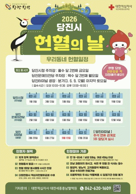 ±×µ¿¾È ´çÁø½Ãû¿¡¼ Ȧ¼ö ´Þ µÎ ¹øÂ° ¿ù¿äÀÏ¿¡ ÇåÇ÷ÀÇ ³¯À» ¿î¿µÇßÀ¸³ª, 2026³âºÎÅʹ Ȧ¼ö ´Þ µÎ ¹øÂ° ±Ý¿äÀÏ·Î Á¶Á¤ÇÑ´Ù. À̸¦ ÅëÇØ º¸°Ç¼Ò´Â Á÷ÀåÀΰú ½Ã¹ÎµéÀÌ ´õ ÆíÇÏ°Ô Âü¿©ÇÒ ¼ö ÀÖÀ» °ÍÀ¸·Î º¸°í ÀÖ´Ù.