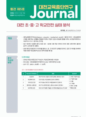 2025³â ´ëÀü±³À°Á¾´Ü¿¬±¸Àú³Î 5, 6È£´Â Á¦2Â÷ ´ëÀü±³À°Á¾´Ü¿¬±¸ µ¥ÀÌÅ͸¦ ÁÖÁ¦¿¡ ¸Â°Ô Åë°è ºÐ¼®ÇÑ ¿¬±¸ °á°ú¹°·Î ÇâÈÄ °è¼Ó À̾îÁú Àü¸ÁÀÌ´Ù.