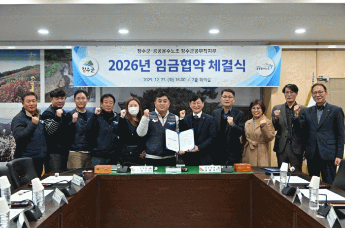 À̳¯ Çù¾à½Ä¿¡´Â ÃÖÈÆ½Ä Àå¼ö±º¼ö¸¦ ºñ·ÔÇÑ ³ë»ç ¾çÃø ±³¼·À§¿ø 11¸íÀÌ Âü¼®ÇßÀ¸¸ç Çù¾à¼ ¼¸íÀ» ÅëÇØ Àå¼ö±º °ø¹«Á÷ÁöºÎ¿Í 2025³â¡¤2026³â ÀÓ±ÝÇù¾àÀ» È®Á¤Çß´Ù.