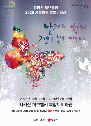 Àü½Ã¿Í ´õºÒ¾î °Ü¿ïÀÇ È°±â¸¦ ´õÇÒ ¡®Á¦12ȸ Áö¸®»ê ¹Ù·¡ºÀ ´«½ä¸ÅÀ塯 Çà»çµµ ³»³â 1¿ù 10ÀϺÎÅÍ 2¿ù 18ÀϱîÁö Áö¸®»êÇãºê¹ë¸® ÀÏ¿ø¿¡¼ ÆîÃÄÁ® ½Ç³»¿¡¼´Â µûµíÇÑ ³ªºñ Àü½Ã¸¦ °ü¶÷Çϰí, ½Ç¿Ü¿¡¼´Â Â¥¸´ÇÑ ´«½ä¸Å¸¦ Áñ±æ ¼ö ÀÖ¾î °Ü¿ïö ÃÖ°íÀÇ °¡Á· ¿©Çà ÄÚ½º°¡ µÉ °ÍÀÌ´Ù.