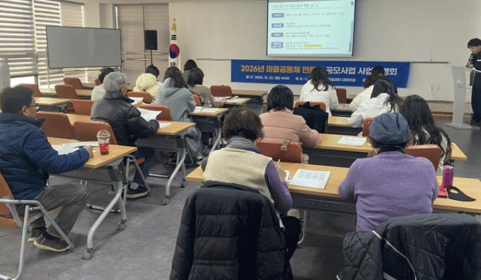 ³ªÁֽô Áö³ 22ÀÏ ³ªÁֽà °øÀÍȰµ¿Áö¿ø¼¾ÅÍ ´ëȸÀǽǿ¡¼ ¸¶À»°øµ¿Ã¼ ±¸¼º¿ø°ú ½Ã¹ÎµéÀ» ´ë»óÀ¸·Î 2026³â ¸¶À»°øµ¿Ã¼ ¸¸µé±â °ø¸ð»ç¾÷ ¼³¸íȸ¸¦ °³ÃÖÇß´Ù°í 26ÀÏ ¹àÇû´Ù.