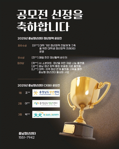 °°Àº ±â°£ µ¿¾È ÁøÇàµÈ ÃæÃ»³²µµ û³â¼¾ÅÍ CI °ø¸ðÀü ¿ª½Ã ÃÖÁ¾ ¼±Á¤ °á°ú¸¦ ¹ßÇ¥Çß´Ù.