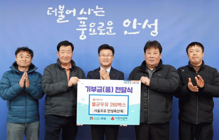 ¼¿ï¿ìÀ¯ ¾È¼ºÃà»ê°è´Â ¸ê±Õ¿ìÀ¯ 260¹Ú½º(24°³ÀÔ 200ml, ±âºÎ°¡¾× 400¸¸ ¿ø »ó´ç)¸¦ ±âºÎÇß´Ù. À̹ø ±âºÎ´Â ȸ¿ø ȸºñ¸¦ ÅëÇØ ¸¶·ÃµÈ °ÍÀ¸·Î, Áö¿ª»çȸ¿ÍÀÇ »ó»ýÀ» ½ÇõÇÏÀÚ´Â Á¶ÇÕ¿øµéÀÇ ¶æÀÌ ¹Ý¿µµÈ °ÍÀÌ´Ù.