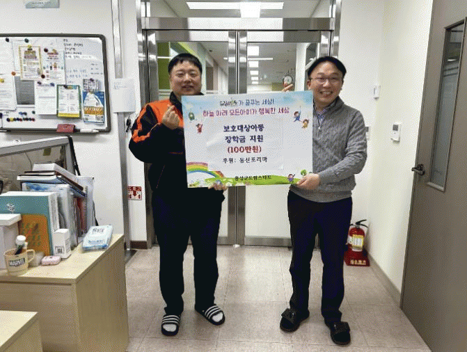 µ¿½ÅÆ÷¸®¸¶ ´ëÇ¥ÀÌ»ç ¹Ú¿µ´ë´Â¡°¾î·Á¿î ȯ°æ ¼Ó¿¡¼µµ ¹à°í °Ç°ÇÏ°Ô ¼ºÀåÇϰí ÀÖ´Â ¾Æµ¿µé¿¡°Ô ÀåÇбÝÀ» Áö¿øÇØ ÁÙ ¼ö ÀÖ¾î¼ ±â»Ú´Ù¡±¸ç, ¡°ÀÛÀº Á¤¼ºÀÌÁö¸¸ ¿ì¸® ¾ÆÀ̵éÀÌ ¹Ì·¡¸¦ ²Þ²Ù´Â µ¥ µµ¿òÀÌ µÇ±æ ¹Ù¶õ´Ù¡±°í ÀüÇß´Ù.