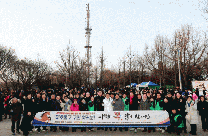 ¹ÌÃßȦ±¸ »õ¸¶À»È¸(ȸÀå ÃßÈ£¼º)°¡ ÁÖÃÖ ¹× ÁÖ°üÇÑ À̹ø Çà»ç´Â ¿µÇÏÀÇ ÃßÀ§ ¼Ó¿¡¼µµ »õÇØ ù ÀÏÃâÀ» º¸·Á´Â ±¸¹ÎµéÀÇ ¶ß°Å¿î ¿±â·Î °¡µæÇß´Ù.