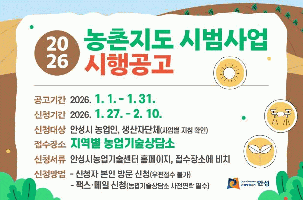 ±âŸ ÀÚ¼¼ÇÑ »çÇ×Àº ¾È¼º½Ã³ó¾÷±â¼ú¼¾ÅÍ È¨ÆäÀÌÁö °øÁö»çÇ׿¡ ÀÖ´Â °ø°í¹®À̳ª »ç¾÷ ´ã´ç ºÎ¼¿¡ ¹®ÀÇÇÏ¸é µÈ´Ù.
