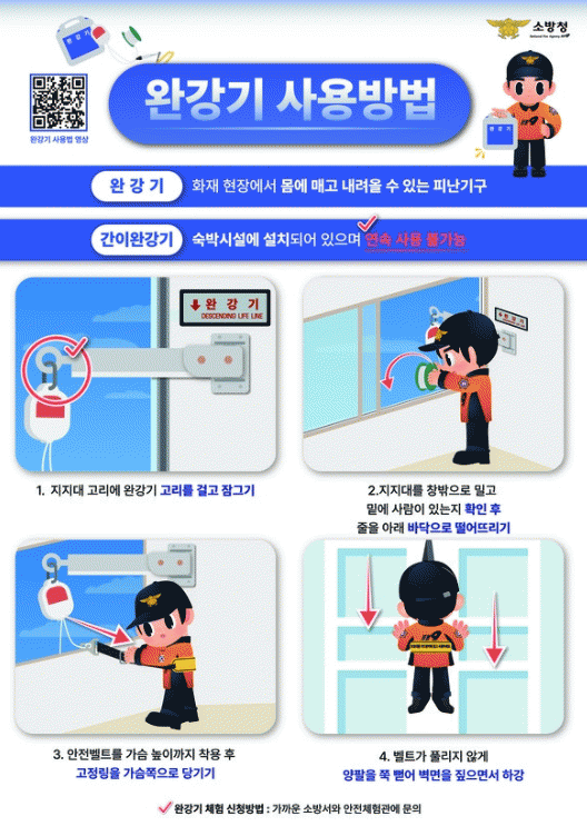 ¿Ï°±â´Â ÈÀç ÇöÀå¿¡¼ ¸ö¿¡ Âø¿ëÇØ Áö»óÀ¸·Î ³»·Á¿Ã ¼ö ÀÖ´Â Çdz±â±¸·Î, ¾ÆÆÄÆ®¿Í ¼÷¹Ú½Ã¼³ µî °íÃþ °ÇÃ๰¿¡ ¼³Ä¡µÅ ÀÖ´Ù. ÈÀç·Î ÀÎÇØ °è´Ü ÀÌ¿ëÀÌ ¾î·Æ°Å³ª ¿¬±â°¡ °¡µæ Âù »óȲ¿¡¼ ½Å¼ÓÇÑ ´ëÇǸ¦ µ½´Â Áß¿äÇÑ ¾ÈÀüÀåºñ´Ù.
