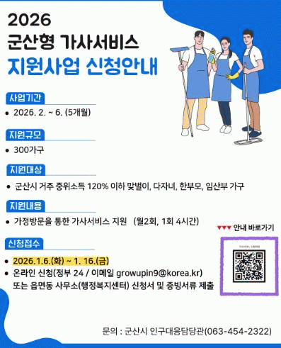 Áö¿ø ´ë»óÀº ±º»ê¿¡ °ÅÁÖÇÏ´Â 12¼¼ ÀÌÇÏ Àڳฦ µÐ ÁßÀ§¼Òµæ 120% ÀÌÇÏ ¸Â¹úÀÌ, ´ÙÀÚ³à °¡Á¤, ÇѺθ𠰡Á¤, ÀÓ»êºÎ°¡ ÀÖ´Â °¡±¸ µîÀÌ´Ù.
