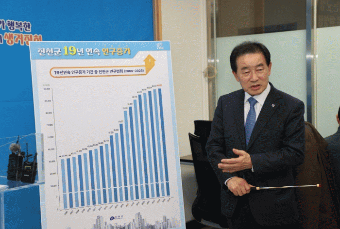 À±°æ¼ø ±º Àα¸Á¤Ã¥°úÀåÀº ¡°19³â ¿¬¼Ó Àα¸Áõ°¡ÀÇ ±â·ÏÀº ´Ü¼øÇÑ Åë°èÀÇ º¯È°¡ ¾Æ´Ï¶ó, ÁøÃµ±ºÀÌ ¾î¶² ±ºÁ¤À» ¼±ÅÃÇØ ¿Ô°í ±× ¼±ÅÃÀÌ ¾î¶² °á°ú·Î À̾îÁ³´ÂÁö¸¦ º¸¿©ÁÖ´Â »ó¡ÀûÀÎ ÀÌÁ¤Ç¥¶ó°í »ý°¢ÇÑ´Ù¡±¸ç ¡°¾ÕÀ¸·Îµµ ¼ýÀÚ¿¡ ¸Å¸ôµÈ ¼ºÀåÀÌ ¾Æ´Ñ ³»½Ç ÀÖ´Â Àα¸ ¼ºÀå ±¸Á¶¸¦ ´õ¿í ´Ü´ÜÈ÷ ÇØ ÁøÃµ±ºÀÌ Áö¹æÁ¤ºÎÀÇ ¼ºÀå Áöħ¼ ¿ªÇÒÀ» ÇÒ ¼ö ÀÖµµ·Ï Çϰڴ١±°í ¸»Çß´Ù.
