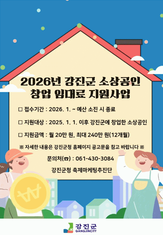 Áö¿ø ´ë»óÀº 2025³â 1¿ù 1ÀÏ ÀÌÈÄ °Áø±º¿¡ »ç¾÷ÀÚµî·Ï°ú Áֹεî·Ï ÁÖ¼Ò¸¦ µÎ°í â¾÷ÇÑ ¼Ò»ó°øÀÎ Áß, â¾÷ ÈÄ 3°³¿ù ÀÌ»ó ÀÓ´ë·á¸¦ ³³ºÎÇϰí ÀÖ´Â À̵éÀÌ´Ù. Áö¿ø±ÝÀº ¿ù ÃÖ´ë 20¸¸ ¿ø¾¿, ÃÖÀå 12°³¿ù µ¿¾È ÃÑ 240¸¸ ¿ø±îÁö Áö±ÞµÈ´Ù.