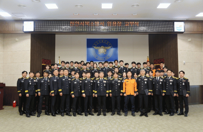 ÀÓ¿ëÀåÀ» ¹ÞÀº ¼Ò¹æ°ø¹«¿øµéÀº ¡°»õ·Î¿î Á÷¹«¿¡¼ ÃÖ¼±À» ´ÙÇØ Áö¿ª»çȸ ¾ÈÀüÀ» ÁöŰ°Ú´Ù¡±´Â °¢¿À¸¦ ¹àÇû´Ù.
