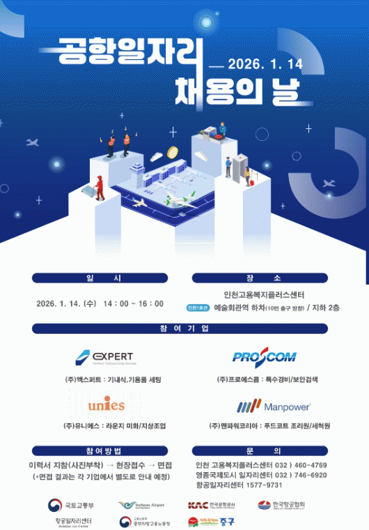 À̹ø ¡®°øÇ×ÀÏÀÚ¸® ä¿ëÀÇ ³¯¡¯Àº Ç×°ø»ê¾÷ ºÐ¾ß ÀÏÀÚ¸® È®´ë¿Í °ü·Ã ±â¾÷ÀÇ Àη¼ö±Þ ¹®Á¦ ÇØ°áÀ» À§ÇØ ¸¶·ÃµÈ Çà»ç·Î, ÀÎõ Áß±¸¿Í ÁߺÎÁö¹æ°í¿ë³ëµ¿Ã», Ç×°øÀÏÀÚ¸®¼¾ÅͰ¡ Çù¾÷ÇØ ¿î¿µÇÑ´Ù.