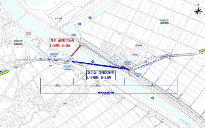 À̹ø »ç¾÷ ¹Ý¿µÀ¸·Î ³Æ÷±³´Â Æø 9.5m, ¿¬Àå 370m ±Ô¸ðÀÇ 2Â÷·Î ±³·®À¸·Î Àç°¡¼³µÇ¸ç, ±³·® ³ôÀÌ »óÇâ°ú ÇÔ²² »ó¡¤ÇÏ·ù Á¦¹æ º¸°, Á¢¼Óµµ·Î °³¼±ÀÌ º´ÇàµÉ ¿¹Á¤ÀÌ´Ù.