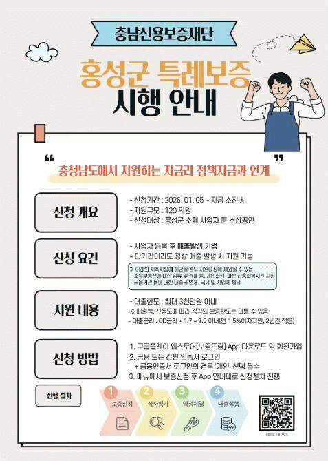 ½Åû ´ë»óÀº È«¼º±º¿¡ »ç¾÷ÀåÀ» µÎ°í ¿µ¾÷ ÁßÀÎ ¼Ò»ó°øÀÎÀ̸ç, ¾÷ü´ç º¸Áõ Çѵµ´Â ÃÖ´ë 3õ¸¸ ¿ø À̳»ÀÌ´Ù. »óȯ ¹æ½ÄÀº ¡ã2³â °ÅÄ¡ ÀϽûóȯ ¡ã2³â °ÅÄ¡ 3³â ±ÕºÐ»óȯ ¡ã2³â °ÅÄ¡ 5³â ±ÕºÐ»óȯ Áß ¼±ÅÃÇÒ ¼ö ÀÖ´Ù.