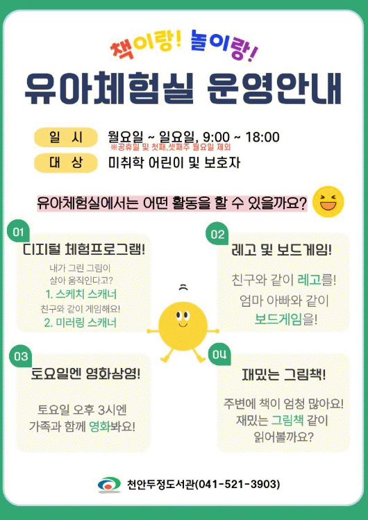 µÎÁ¤µµ¼°üÀº Áö³ÇØ ¡®³»ÀÏÀÇ ¾î¸°À̽ǡ¯ Á¶¼º »ç¾÷À» ÅëÇØ ±âÁ¸ ¾î¸°À̽ǰú À¯¾Æ½ÇÀ» ºÐ¸®Çϰí, À¯¾ÆÃ¼Çè½Ç ³»¿¡ ¿µÀ¯¾Æ Àü¿ë ±×¸²Ã¥°ú âÀÇ·ÂÀ» ÀÚ±ØÇÏ´Â µðÁöÅÐ ÄÜÅÙÃ÷¸¦ ¹èÄ¡ÇØ ¹ÌÃëÇÐ ¾Æµ¿ÀÇ µ¶¼ Á¢±Ù¼ºÀ» ³ô¿´´Ù.