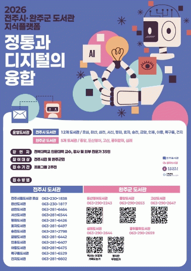 ÀüÁֽô Áö³ 8ÀϺÎÅÍ ¿À´Â 2¿ù 5ÀϱîÁö 12°³ ½Ã¸³µµ¼°ü¿¡¼ ÀüºÏ´ëÇб³¿Í ¿¬°èÇÑ ¡®ÀüÁֽà µµ¼°ü Áö½ÄÇ÷§Æû: Á¤Åë°ú µðÁöÅÐÀÇ À¶ÇÕ¡¯ ÇÁ·Î±×·¥À» ¿î¿µÇÑ´Ù°í 12ÀÏ ¹àÇû´Ù.
