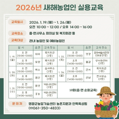 »õÇØ ³ó¾÷ÀÎ ½Ç¿ë±³À°Àº ¸Å³â ÃÊ ³ó¾÷±â¼ú¼¾ÅÍ¿¡¼ ÁÖ°üÇÏ´Â ÇÁ·Î±×·¥À¸·Î, Áö³ÇØ ³ó¾÷ÀÇ ¼º°ú¸¦ µÇµ¹¾Æº¸°í »õ·Î¿î ¿µ³ó°èȹÀ» ¼ö¸³Çϱâ À§ÇØ ½Ç½ÃÇÏ´Â ±³À°ÀÌ´Ù.