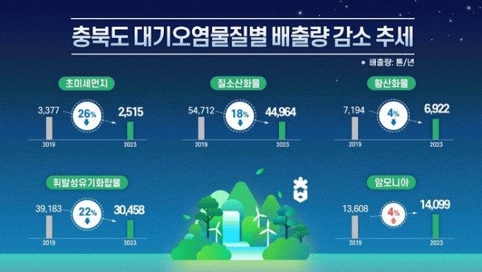 ÃæºÏÀÇ Ãʹ̼¼¸ÕÁö ¿¬Æò±Õ ³óµµ ¶ÇÇÑ 2019³â ´ëºñ 39% °¨¼ÒÇÏ¿© ¹èÃâ·® º¯È¿Í À¯»çÇÏ°Ô ¶Ñ·ÇÇÑ °³¼± °æÇâÀ» º¸¿´´Ù.