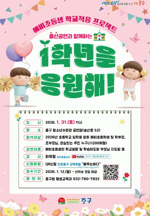 Âü¿© Èñ¸ÁÀÚ´Â ÀÎõ Áß±¸ ±³À° Æ÷ÅÐ ¡®¹è¿ì´Â ¹Ù´Ù ¶Ç´Â Å¥¾Ë(QR)Äڵ带 ÅëÇØ ½ÅûÇÏ¸é µÈ´Ù(¼±Âø¼ø ¸¶°¨).