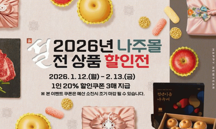 ³ªÁֽô 2025³â ¿¬ ¸ÅÃâ 16¾ï ¿øÀ» ´Þ¼ºÇÏ¸ç ¿ª´ë ÃÖ°í ¸ÅÃâÀ» ±â·ÏÇÑ ³ªÁÖ¸ô¿¡¼ ¼³ ¸íÀýÀ» ¾ÕµÎ°í ¿À´Â 2¿ù 13ÀϱîÁö ¡®2026³â ³ªÁÖ¸ô ¼³ ¸íÀý ±âȹÀü¡¯À» ÁøÇàÇÑ´Ù°í 14ÀÏ ¹àÇû´Ù.