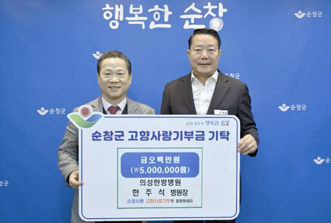 ¼øÃ¢À¾ ¹é»ê¸® Ãâ½ÅÀÎ ÇÑÁÖ¼® º´¿øÀåÀº Áö³ 2005³âºÎÅÍ °íÇâÀÇ ¾î·Á¿î ÀÌ¿ô°ú »çȸº¹Áö½Ã¼³À» À§ÇØ ²ÙÁØÈ÷ ±âºÎȰµ¿À» À̾î¿À°í ÀÖÀ¸¸ç, ¼øÃ¢±º¿¡ 3³â ¿¬¼Ó°íÇâ»ç¶û±âºÎ±Ý 500¸¸¿øÀ» Àü´ÞÇØ Áö¿ª»çȸÀÇ ±Í°¨ÀÌ µÇ°í ÀÖ´Ù.