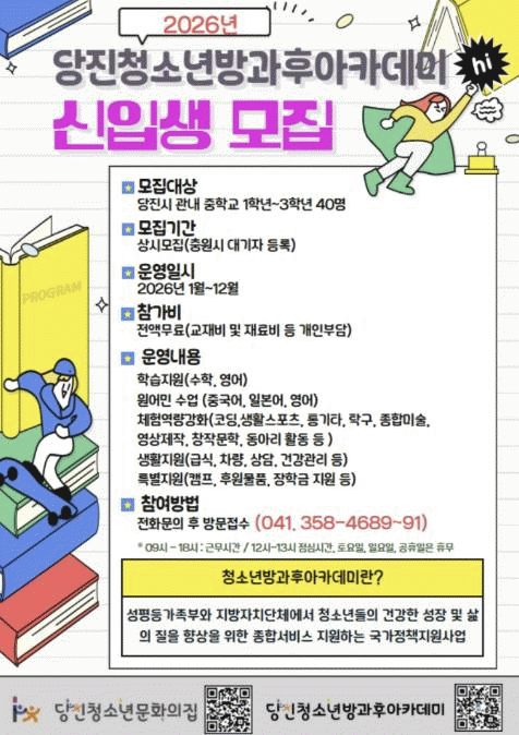 ¸ðÁý ´ë»óÀº ´çÁø½Ã °ü³» ÁßÇб³¿¡ ÀçÇÐ ÁßÀΠû¼Ò³â(¿¹ºñ Áß1~Áß3)À¸·Î, ¹æ°ú ÈÄ µ¹º½ ¶Ç´Â ´Ù¾çÇÑ È°µ¿À» Èñ¸ÁÇϴ û¼Ò³âÀ̶ó¸é ´©±¸³ª Áö¿ø °¡´ÉÇÏ´Ù.