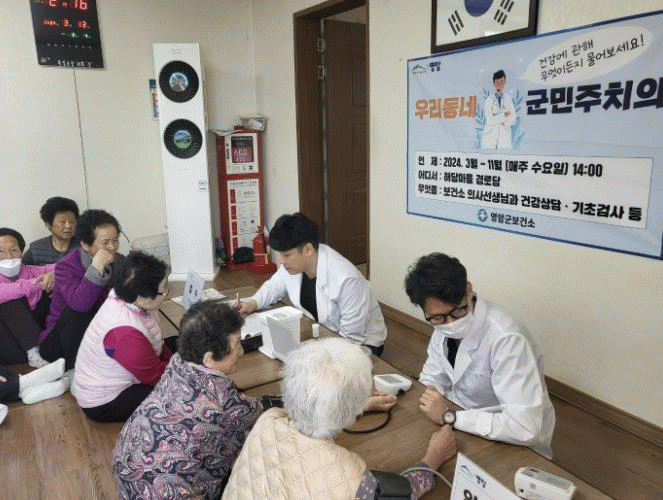 Áö³ÇØ 3~11¿ù ¿µ¾Ï±º º¸°ÇÁö¼Ò¿Í Áø·á¼Ò Á÷¿øµé·Î ±¸¼ºµÈ 23°³ ÆÀ ÀÇ·áÁøÀº, ¸ÅÁÖ ¼ö¿äÀÏ 410°³ ¸¶À»°æ·Î´çÀ» ÃÑ 665ȸ ã¾Æ°¡ 2¸¸5,885¸íÀ» µ¹º¸´Â ±º¹ÎÁÖÄ¡ÀÇ »ç¾÷À» ½Ç½ÃÇß´Ù.