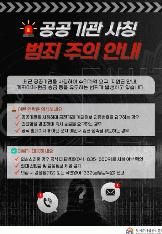 °ø´Ü °ü°èÀÚ´Â ¡°°ø´ÜÀ» »çĪÇÑ °è¾à ¿äûÀ̳ª ±ÝÀü ¿ä±¸¸¦ ¹ÞÀ¸¸é Áï½Ã »ç±â¸¦ ÀǽÉÇØ¾ß ÇÑ´Ù.¡±¶ó¸ç, ¡°Àǽɽº·¯¿î ¿¬¶ôÀ» ¹Þ¾ÒÀ» ¶§´Â °ø´Ü ȨÆäÀÌÁö¸¦ ÅëÇØ ºÎ¼¿Í ´ã´çÀÚ¸¦ È®ÀÎÇϰųª ´ëÇ¥¹øÈ£·Î »ç½Ç ¿©ºÎ¸¦ È®ÀÎÇØ ´Þ¶ó.¡±¶ó°í ´çºÎÇß´Ù.