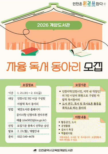 ÀÎõ ½Ã¹Î ¶Ç´Â Áö¿ª ³» Á÷ÀåÀÎ 5ÀÎ ÀÌ»óÀ¸·Î ±¸¼ºµÈ µ¶¼¸ðÀÓÀÌ¸é ½ÅûÇÒ ¼ö ÀÖÀ¸¸ç, ¼±Á¤µÈ µ¿¾Æ¸®¿¡´Â Ȱµ¿ °ø°£°ú µµ¼¸¦ Á¦°øÇÏ°í µ¿¾Æ¸® Ȱµ¿°ú ¿¬°èµÈ °Á¸¦ Áö¿øÇÑ´Ù.