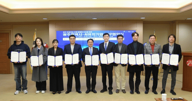 ±¤ÁÖ±¤¿ª½Ã´Â 16ÀÏ ½Ãû ºñÁî´Ï½º·ë¿¡¼ Á¦Á¶¡¤ÇコÄÉ¾î µî ÀΰøÁö´É(AI) Àü¹®±â¾÷ 9°³»ç¿Í ¡®±¤ÁÖÇü ÀΰøÁö´É ºñÁî´Ï½º ¾÷¹«Çù¾à¡¯À» ü°áÇß´Ù.