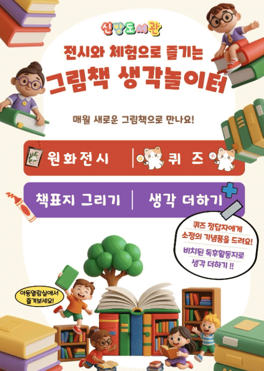 ±×¸²Ã¥ »ý°¢³îÀÌÅÍ´Â ¸Å¿ù »õ·Î¿î ±×¸²Ã¥°ú ÇÔ²²ÇÏ´Â ¿øÈ Àü½Ã, Ã¥ Ç¥Áö ±×¸®±â, »ý°¢ ´õÇÏ±â µî ´Ù¾çÇÑ Ã¼Çè Ȱµ¿À¸·Î ¿î¿µµÈ´Ù.