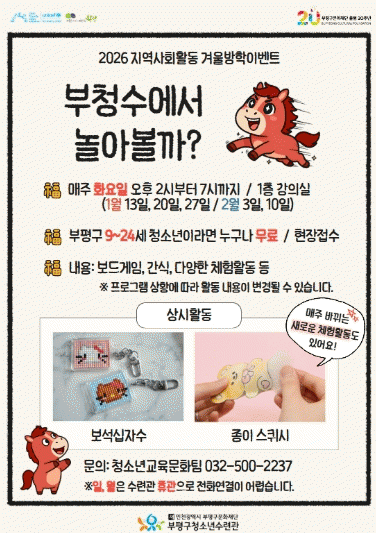 ºÎÆò±¸¿¡ °ÅÁÖÇÏ´Â 9¼¼ºÎÅÍ 24¼¼±îÁöÀÇ Ã»¼Ò³âÀ̶ó¸é »çÀü ½Åû ¾øÀÌ ÇöÀå Á¢¼ö·Î ´©±¸³ª ¹«·á·Î Âü¿©ÇÒ ¼ö ÀÖ´Ù.