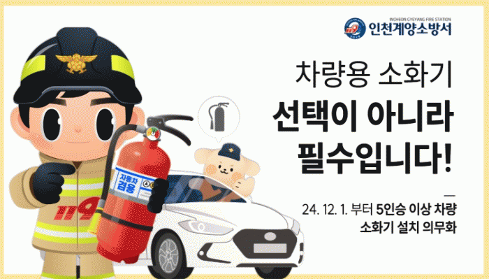 Â÷·®¿ë ¼Òȱâ´Â 2024³â 12¿ù 1ÀÏ ¡®¼Ò¹æ½Ã¼³ ¼³Ä¡ ¹× °ü¸®¿¡ °üÇÑ ¹ý·ü¡¯ °³Á¤¾ÈÀÌ ½ÃÇàµÊ¿¡ µû¶ó 5Àν ÀÌ»ó Â÷·®¿¡ ´ëÇÑ ¼³Ä¡¤ýºñÄ¡°¡ Àǹ«ÈµÆ´Ù.