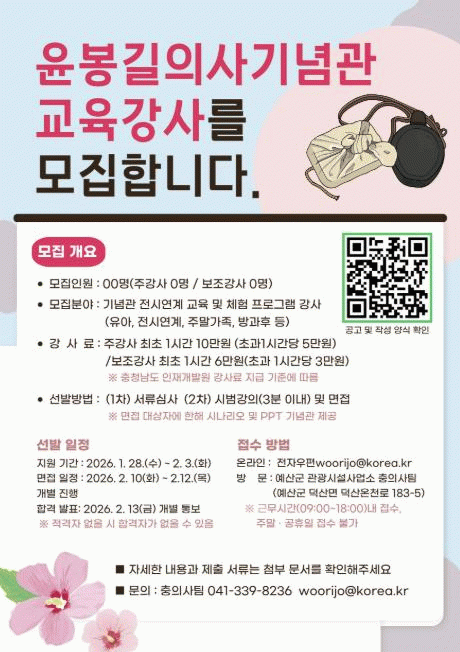 À̹ø ¸ðÁýÀº ÁÖ°»ç¿Í º¸Á¶°»ç·Î ³ª´² ÁøÇàµÇ¸ç, ¼±¹ßµÈ °»ç´Â À¯¾Æ ´ë»ó ±³À° ÇÁ·Î±×·¥À» ºñ·ÔÇØ Àü½Ã ¿¬°è ±³À°, ÁÖ¸» °¡Á· üÇè, ¹æ°ú ÈÄ È°µ¿ µî À±ºÀ±æÀÇ»ç±â³ä°üÀÇ Àü¹® ±³À° ÇÁ·Î±×·¥ ¿î¿µÀ» ¸Ã°Ô µÈ´Ù.