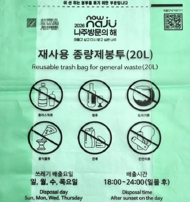 ³ªÁֽô ½Ã¹ÎµéÀÌ ÀÏ»óÀûÀ¸·Î »ç¿ëÇÏ´Â »ýȰ ¾²·¹±â Á¾·®Á¦ºÀÅõ¸¦ ¸Å°³·Î ¡®2026 ³ªÁÖ ¹æ¹®ÀÇ ÇØ¡¯¿Í Áö¿ªÀÇ ¸Å·ÂÀ» Áö¼ÓÀûÀ¸·Î ¾Ë¸± ¼ö ÀÖÀ» °ÍÀ¸·Î ±â´ëÇÑ´Ù.