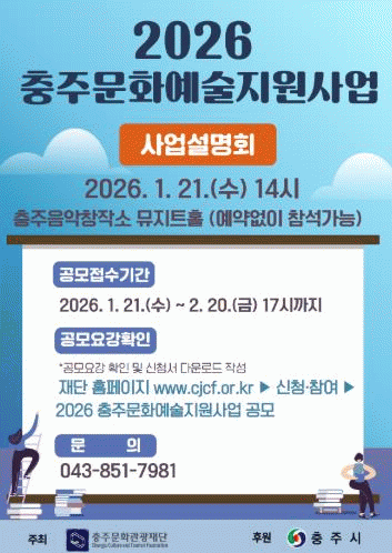 Áö¿ø ´ë»óÀº °ø°íÀÏ ÀÌÀü ÃÖ¼Ò 6°³¿ù ÀÌ»ó ÃæÁֽÿ¡ ÁÖ¼ÒÁö¸¦ µÎ°í ÀÖÀ¸¸ç ÃæÁֽÿ¡¼ ¹®È¿¹¼ú»ç¾÷À» ¿î¿µÇÒ ¿ª·®À» °®Ãá ¿¹¼úÀÎ ¹× ´ÜüÀÌ´Ù.