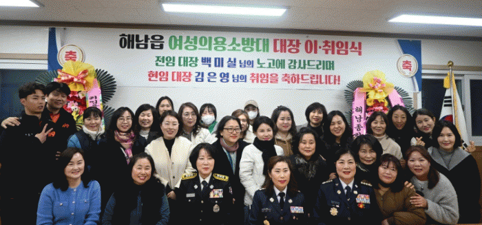 À̤ýÃëÀӽĿ¡´Â ÇØ³²¼Ò¹æ¼ ´ëÀÀ±¸Á¶°úÀåÀ» ºñ·ÔÇØ ÀÇ¿ë¼Ò¹æ´ë¿ø µî °ü°èÀÚµéÀÌ Âü¼®ÇÑ °¡¿îµ¥, ±×°£ÀÇ ³ë°í¿¡ ´ëÇÑ °¨»ç¿Í ÇÔ²² ½ÅÀÓ ´ëÀåÀÇ ÃëÀÓÀ» ÃàÇÏÇÏ´Â ¶æ±íÀº ÀÚ¸®·Î ÁøÇàµÆ´Ù.