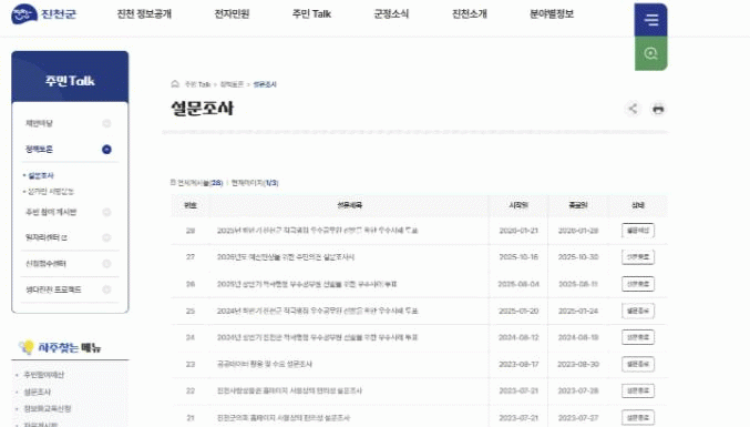 ±º¹ÎÅõÇ¥´Â ÁøÃµ±º¹ÎÀ̶ó¸é ´©±¸³ª ¿À´Â 28ÀϱîÁö ÁøÃµ±º ȨÆäÀÌÁöÀÇ ÁֹΠTalk ¼³¹®Á¶»ç ¸Þ´º¸¦ ÅëÇØ ÅõÇ¥¿¡ Âü¿©ÇÒ ¼ö ÀÖ´Ù.