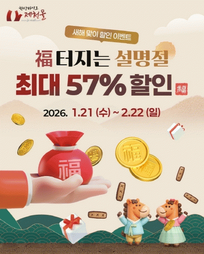 À̹ø Çà»ç´Â 1¿ù 21ÀϺÎÅÍ 2¿ù 22ÀϱîÁö ÇÑ ´Þ°£ À̾îÁö¸ç, ÇÑ¹æ °Ç°½Äǰ°ú ÀüÅë ÇѾàÀç, ¸íÀý ¼±¹° ¼¼Æ® µî ´Ù¾çÇÑ Á¦Ç°À» ÃÖ´ë 57% ÇÒÀÎµÈ °¡°Ý¿¡ ¼±º¸ÀδÙ.