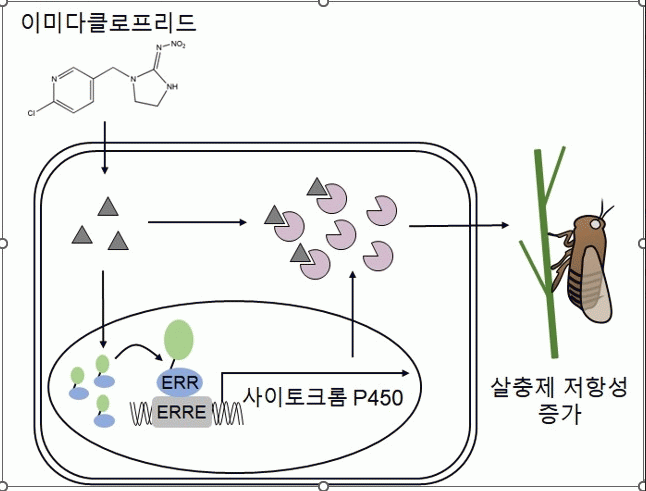 ±èµ·±Ô ±³¼ö ¿¬±¸ÆÀÀº »ìÃæÁ¦ À̴̹ÙŬ·ÎÇÁ¸®µå(imidacloprid)¿¡ ÀúÇ×¼ºÀ» º¸ÀÌ´Â º¸ê±¸ Áý´Ü¿¡¼ Ç٠ȣ¸£¸ó ¼ö¿ëüÀÎ ¡®ERR(Estrogen-related receptor)¡¯ À¯ÀüÀÚÀÇ ¹ßÇöÀÌ ÇöÀúÈ÷ Áõ°¡ÇÑ´Ù´Â Á¡¿¡ ÁÖ¸ñÇß´Ù. ¿¬±¸ °á°ú, ERR À¯ÀüÀÚ°¡ »ìÃæÁ¦ ÇØµ¶ ´ë»ç¿¡ °ü¿©ÇÏ´Â »çÀÌÅäÅ©·Ò P450 È¿¼Ò À¯ÀüÀÚ(CYP4CE1, CYP6CW1)ÀÇ Àü»ç Á¶Àý ºÎÀ§¿¡ Á÷Á¢ °áÇÕÇØ À̵é È¿¼ÒÀÇ ¹ßÇöÀ» ÃËÁøÇÑ´Ù´Â »ç½ÇÀ» ±Ô¸íÇß´Ù.