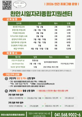 ÀÌ¿Í °ü·ÃÇÑ ÀÚ¼¼ÇÑ ³»¿ëÀº õ¾È½Ã ÀÏÀÚ¸®Á¾ÇÕÁö¿ø¼¾ÅÍ ´©¸®Áý¿¡¼ È®ÀÎÇÒ ¼ö ÀÖ´Ù.