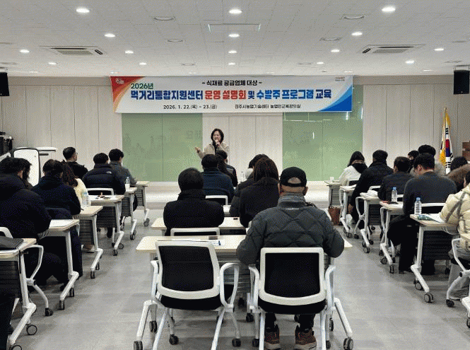 À̹ø ¼³¸íȸ´Â ÀÛ³â 11¿ù °ø¸ð·Î ÃÖÁ¾ ¼±Á¤µÈ 77°³ ½ÄÀç·á °ø±Þ¾÷üÀÇ ´ëÇ¥ÀÚ¿Í ´ã´çÀÚ µî 100¿© ¸íÀÌ Âü¼®ÇÑ °¡¿îµ¥ ¡ã2026³â ¸Ô°Å¸®ÅëÇÕÁö¿ø¼¾ÅÍ ¿î¿µ ÇöȲ ¾È³» ¡ã¿î¿µ °èȹ ¾È³» ¡ã¼ö¡¤¹ßÁÖ ÇÁ·Î±×·¥ ±³À° ¡ã°ø±Þ °è¾à ü°á ¡ãÁúÀÇ¿Í ÀÀ´äÀÇ ¼øÀ¸·Î ÁøÇàµÆ´Ù.