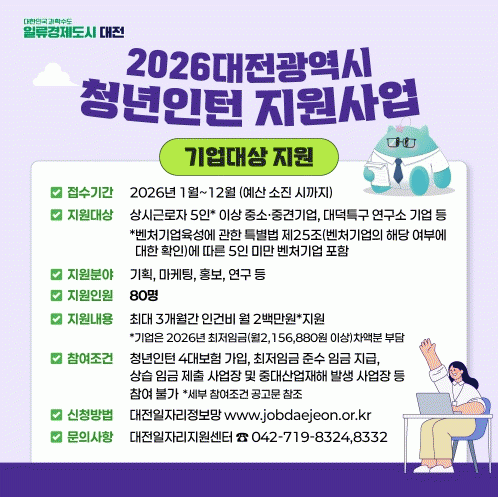 Âü¿©¸¦ ¿øÇÏ´Â ÀÎÅÏÀº ½ÅûÀÏ ±âÁØ ¹ÌÃë¾÷ »óÅÂÀÇ Ã»³âÀ̸ç, ±â¾÷Àº ´ëÀü½Ã Áö¿ø±ÝÀ» Æ÷ÇÔ ÃÖÀúÀÓ±Ý Áؼö ¹× 4´ë º¸Çè°¡ÀÔÀº ÇʼöÀ̰í Á¤ºÎ µîÀ¸·ÎºÎÅÍ º°µµ Áö¿ø±ÝÀ» ¹ÞÁö ¾Ê¾Æ¾ß ÇÑ´Ù.